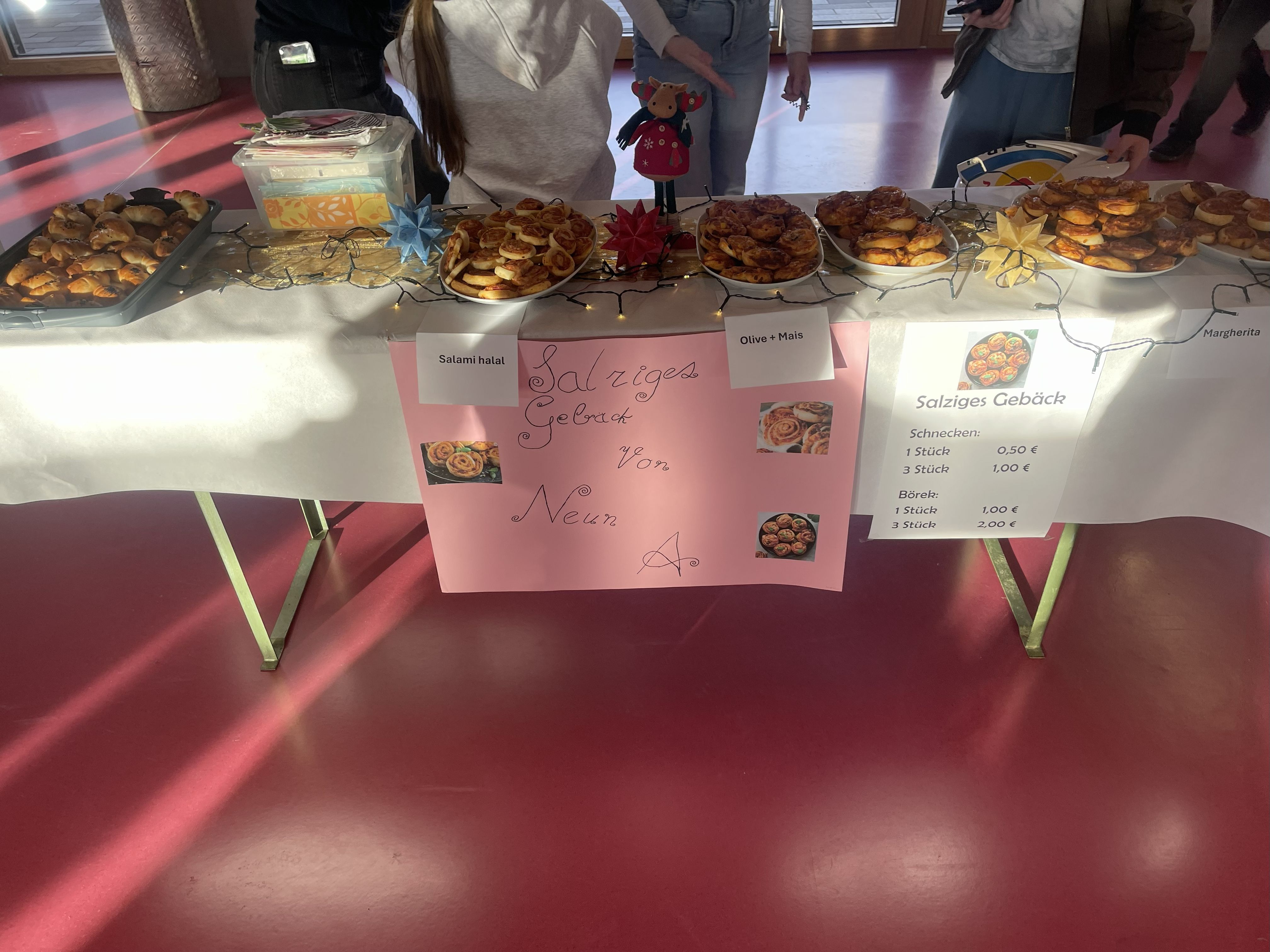 Für das leibliche Wohl war ebenfalls bestens gesorgt: Die Gäste konnten sich über Snacks, kalte und warme Getränke und frisch gebackene Waffeln und Pizzabrötchen freuen, deren Duft durch das ganze Schulhaus zog und für eine gemütliche Atmosphäre sorgte.